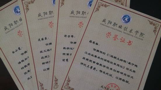 2014年首届教学改革创新研究论文,张同钰老师的《混凝土结构基于施工企业要求的课程改革建议》获得三等奖,许方伟老师、白小斐老师、史国庆老师的论文均获得优秀奖。