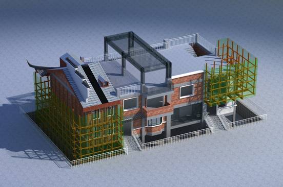 图7砖混结构建筑之木结构屋顶外貌实体图