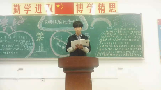 其次由主持人列举我们校园吸烟现象,测量1801班郝涛和张多同学就如何做到在校园禁止吸烟发表自己的看法。学会自我克制,提高自我爱护的意识,公司也应加强管理,适当加重对于校园抽烟行为的处罚力度,做到禁烟行动治标又治本。