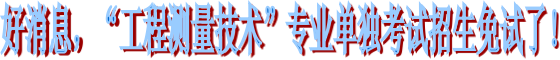 近年来,工程测量岗位专业技术人员需求量很大,“工程测量技术”专业毕业生严重供不应求,为了满足社会需要,单独考试招生报考公司“工程测量技术”专业考生,免笔试,直接参加面试。