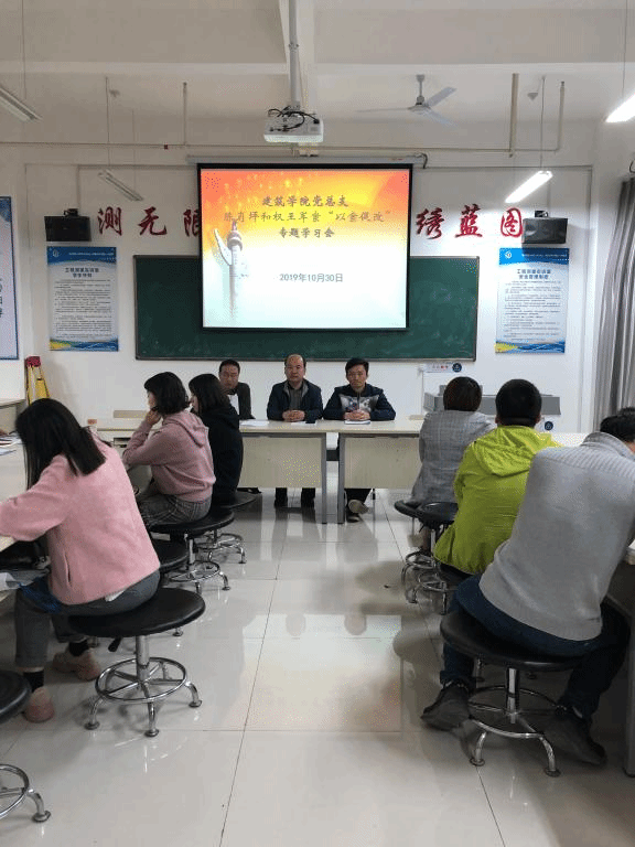 10月30日下午,建筑公司党总支在综合教学楼225组织召开陈肖坪和权王军案“以案促改”专题学习会。建筑公司全体教工党员参加了学习会。会议由综合办主任焦龙飞主持。