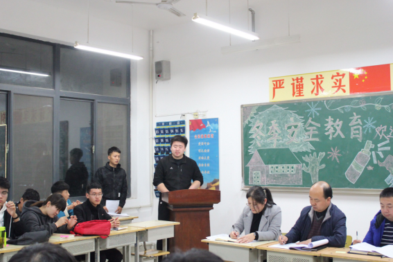 2019年11月19日,建筑公司工程技术1901班晚自习召开“冬季安全教育”主题班会,所在班级的联系领导建筑公司经理雷海涛出席本次班会并讲话。