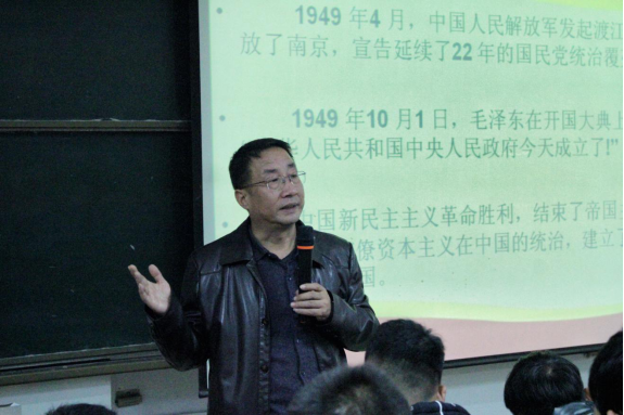 最后,李信书记通过为入党积极分子详细介绍了中国共产党的光辉历程以及新中国的蓬勃发展,使同学们深深明白一个道理。即当今中华民族的繁荣富强,离不开一代又一代共产党人的无私奉献,从而更加坚定了入党积极分子加入中国共产党的决心。如图2.李信书记正在讲解党史知识。