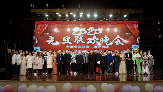 除此之外还有许多精彩的节目带给我们震撼,节目在同学们的欢声笑语中一个个结束了。最后,建筑公司老师与参与晚会的演员合影留念,如图3所示,建筑公司领导、老师与元旦晚会演员合影留念。