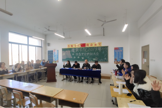 2019年12月26日,建筑公司党总支在教学楼418教室举行了建筑公司2019年中共预备党员纳新大会。建筑公司全体党员同志和2019年4名员工发展对象参加了大会,本次会议由建筑公司学发办主任、员工党支部书记董宇毅主持。