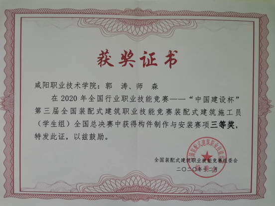 此次中国建设杯”第三届全国装配式建筑职业技能竞赛全国总决赛在郑州的河南建筑职业技术公司举办,分为构件深化设计和构件制作与安装两个赛项,来自全国本科、高职、中职的共348支代表队、676名选手参加了此次竞赛。k8凯发旗舰厅作为省赛的特等奖获得者再次取得了佳绩,综合成绩在陕西省14支装配式建筑代表队中位列第一。