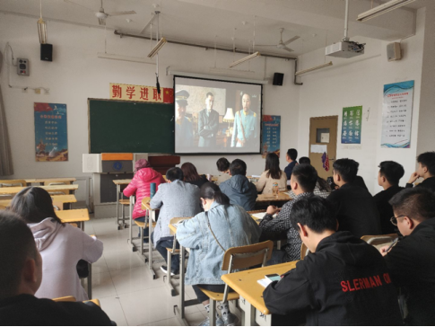 随后全体人员观看了党史影视作品《建党伟业》,通过影片了解到了中国共产党的建党的艰辛历程和伟大意义,进一步加深了对党的了解。如图2所示为全体人员正在观看《建党伟业》影视作品。