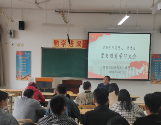2021年4月15日下午14时,建筑公司在教学楼402举行了建筑公司党总支、团总支党史学习教育大会,建筑公司全体党员及建筑公司19名入党积极分子作为员工代表参加了此次会议。