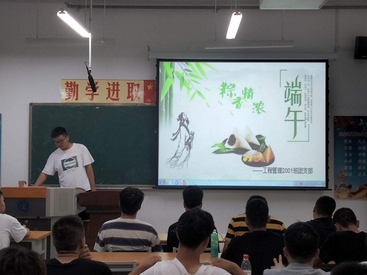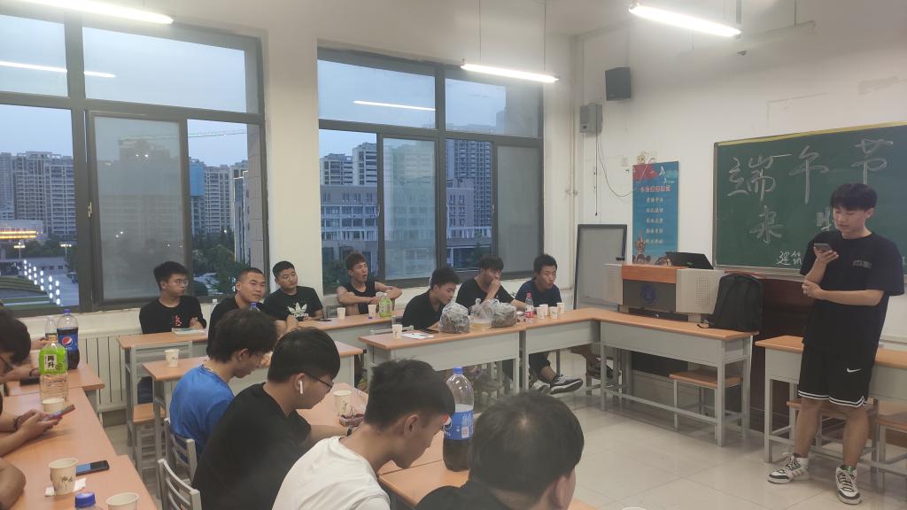 为了发扬传统节日文化,丰富同学们的课余生活,2021年6月8日晚自习,建筑公司2020级班级在教学楼四楼开展了“乐享端午、党史入心”主题班会。