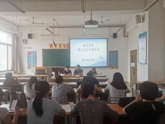 为进一步加强公司安全管理,构建文明校园,强化安全责任,建立有效的安全机制,2021年6月23日下午,建筑公司在教学楼402召开了安全稳定工作专题会议,会议由建筑公司党总支书记邢剑宏主持,全体教职工参加了会议。