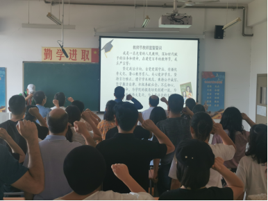 在第37个教师节的到来之际,为了激发广大教师教书育人的积极性、主动性,增强教师职业的荣誉感、使命感,9月9日下午,建筑公司在教学楼402教室隆重举行教师宣誓仪式,全体专兼职教师参加了宣誓仪式,仪式由建筑公司党总支书记邢剑宏主持。
